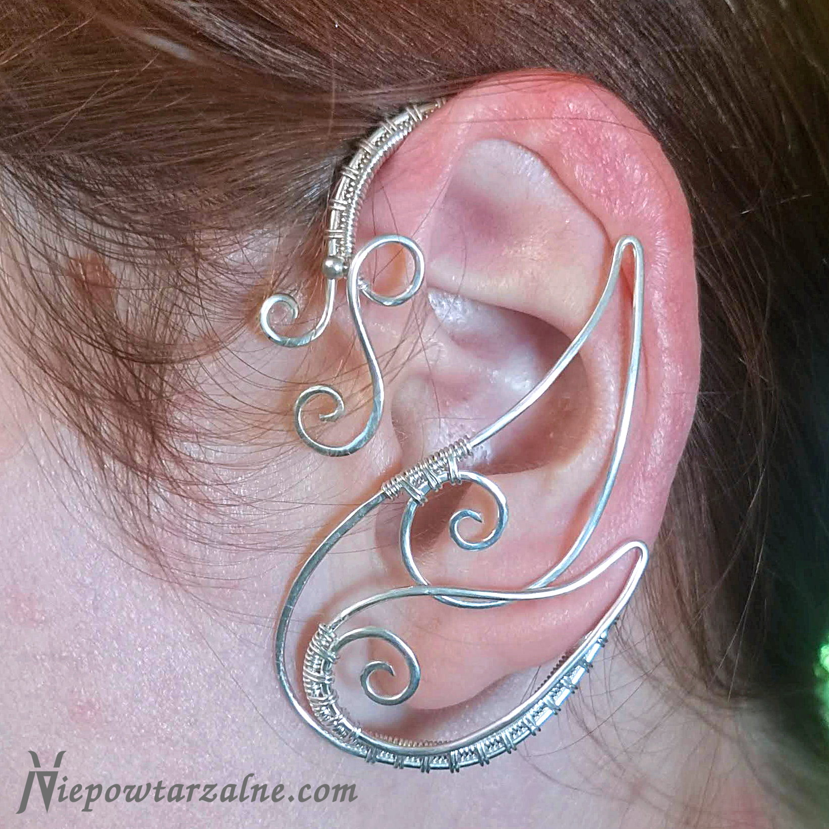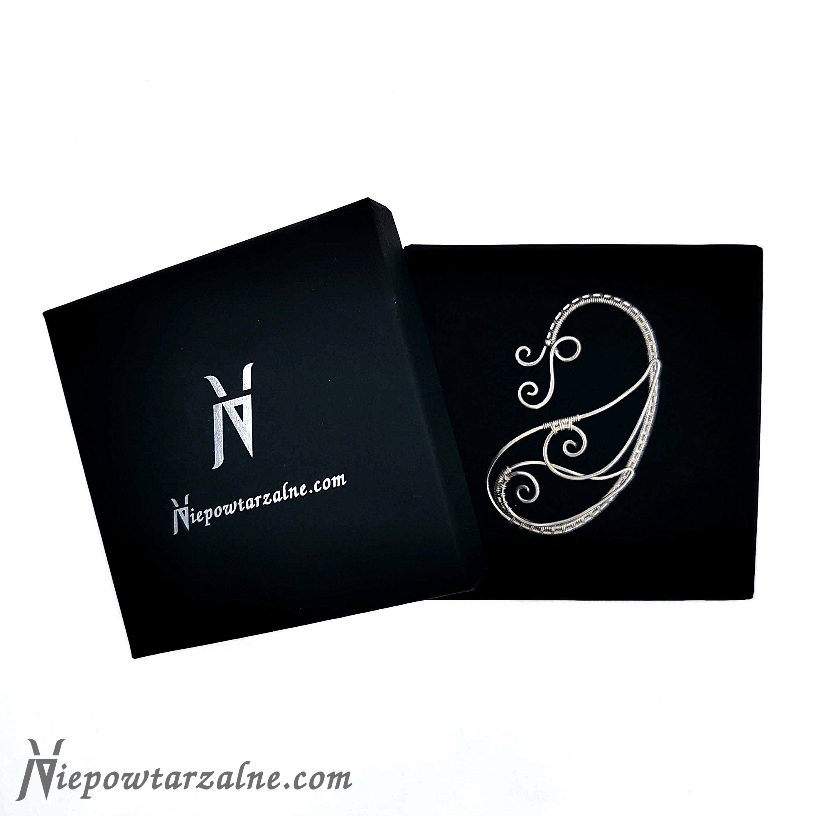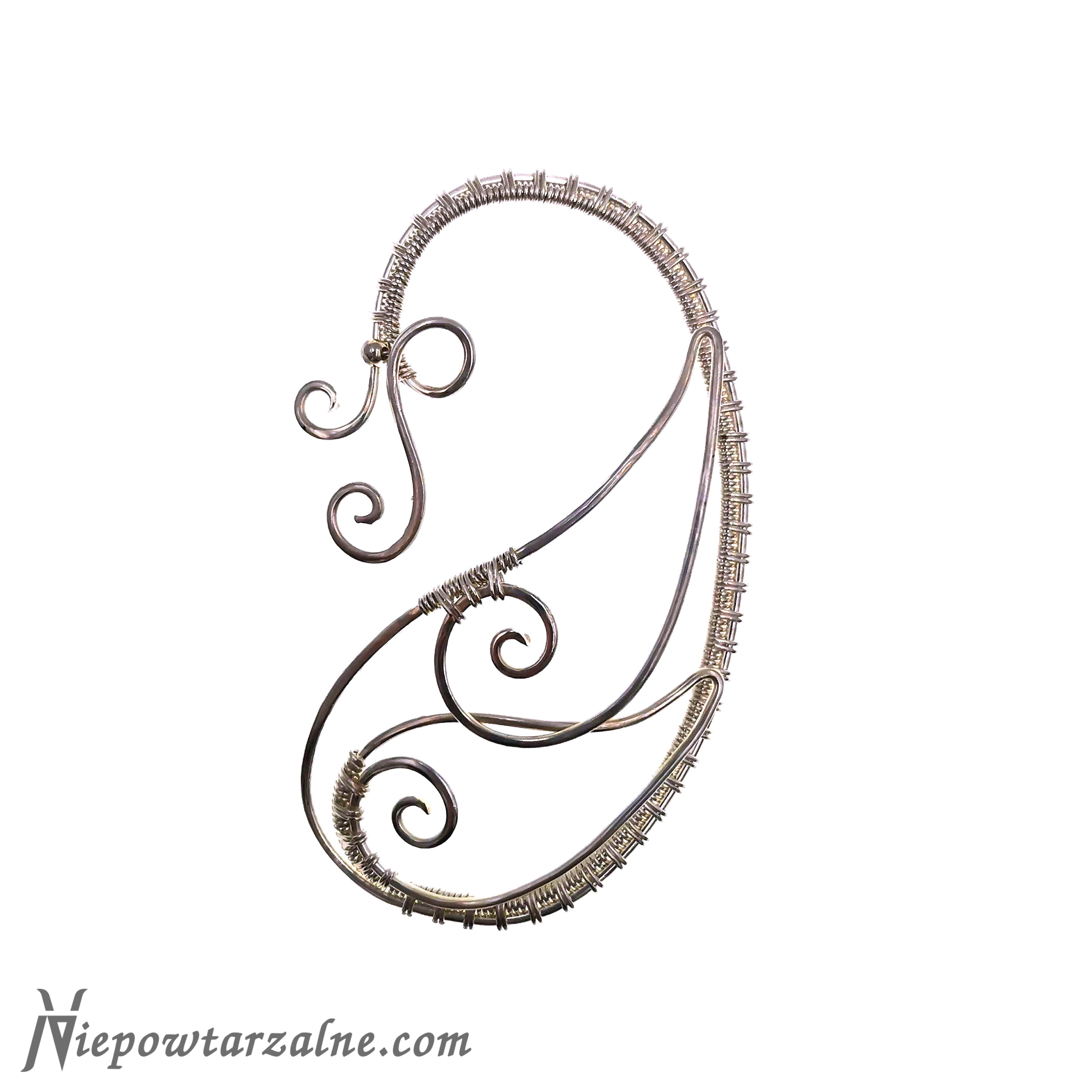 Baśniowa nausznica wykonana ze srebra w ręcznej technice wire-wrapping. Stylizowana na skrzydełko wróżki. Na lewe ucho.