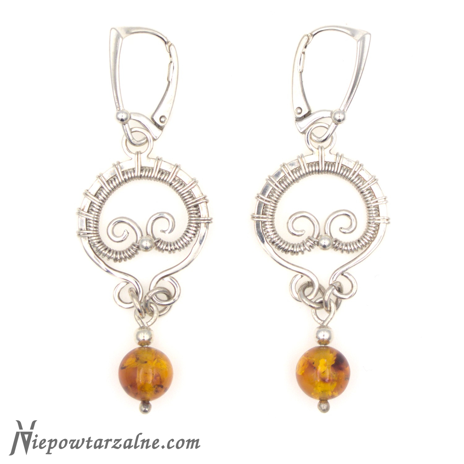 Wspaniałe kolczyki wykonane ręcznie, ze srebra z naturalnym Bursztynem Bałtyckim. Ozdobne, zamykane bigle angielskie. Całość prezentuje się lekko, elegancko i z charakterem.