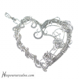 Proszę o szczegółyEfektowny, srebrny wisior w kształcie serca. Wykonany w całości ręcznie, pracochłonną techniką wire-wrapping. Ozdobiony trzema uroczymi różyczkami. Zachwycający i przyciągający spojrzenia. Idealny prezent dla ukochanej osoby.